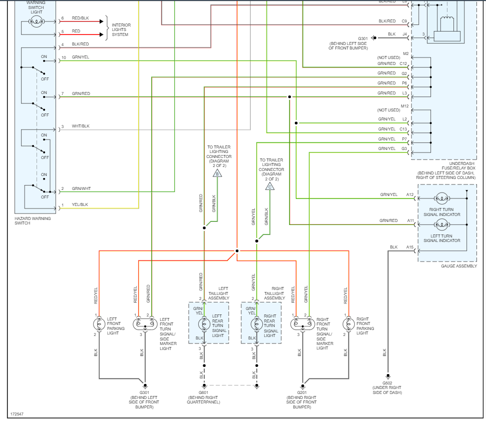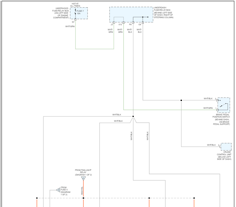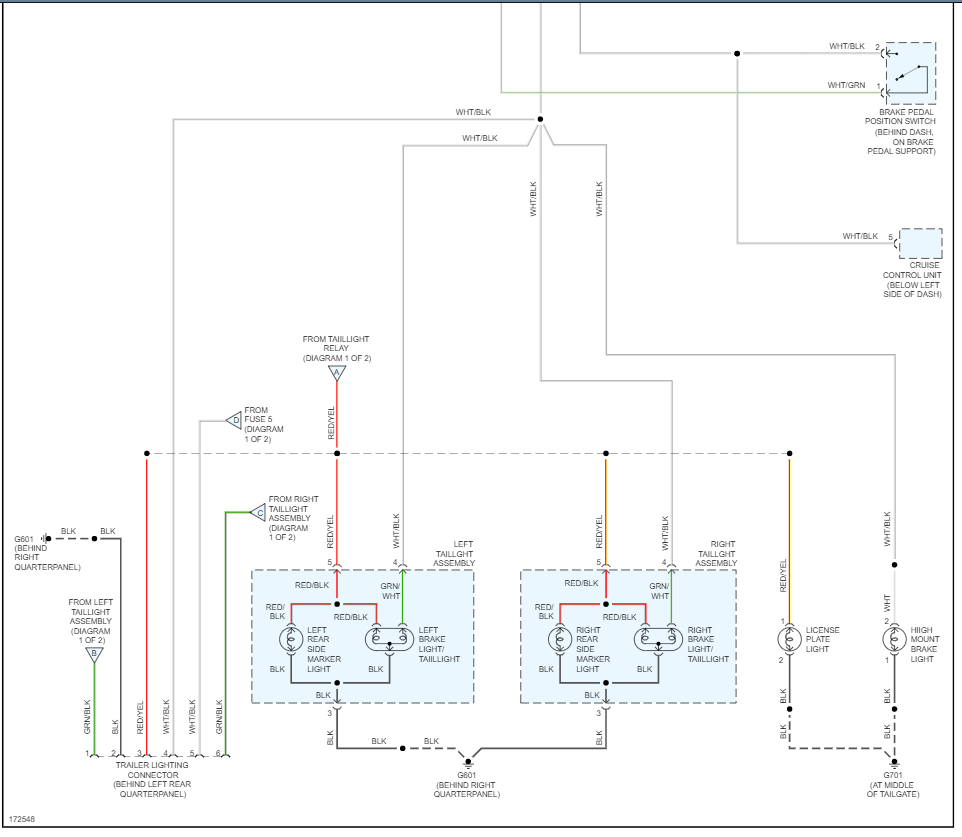 Is there a trailer wiring connector? If so, that is the next place, I would look to see if a connection is shorted together. Here are the taillight and brake light wiring diagrams so you can see how the system works.