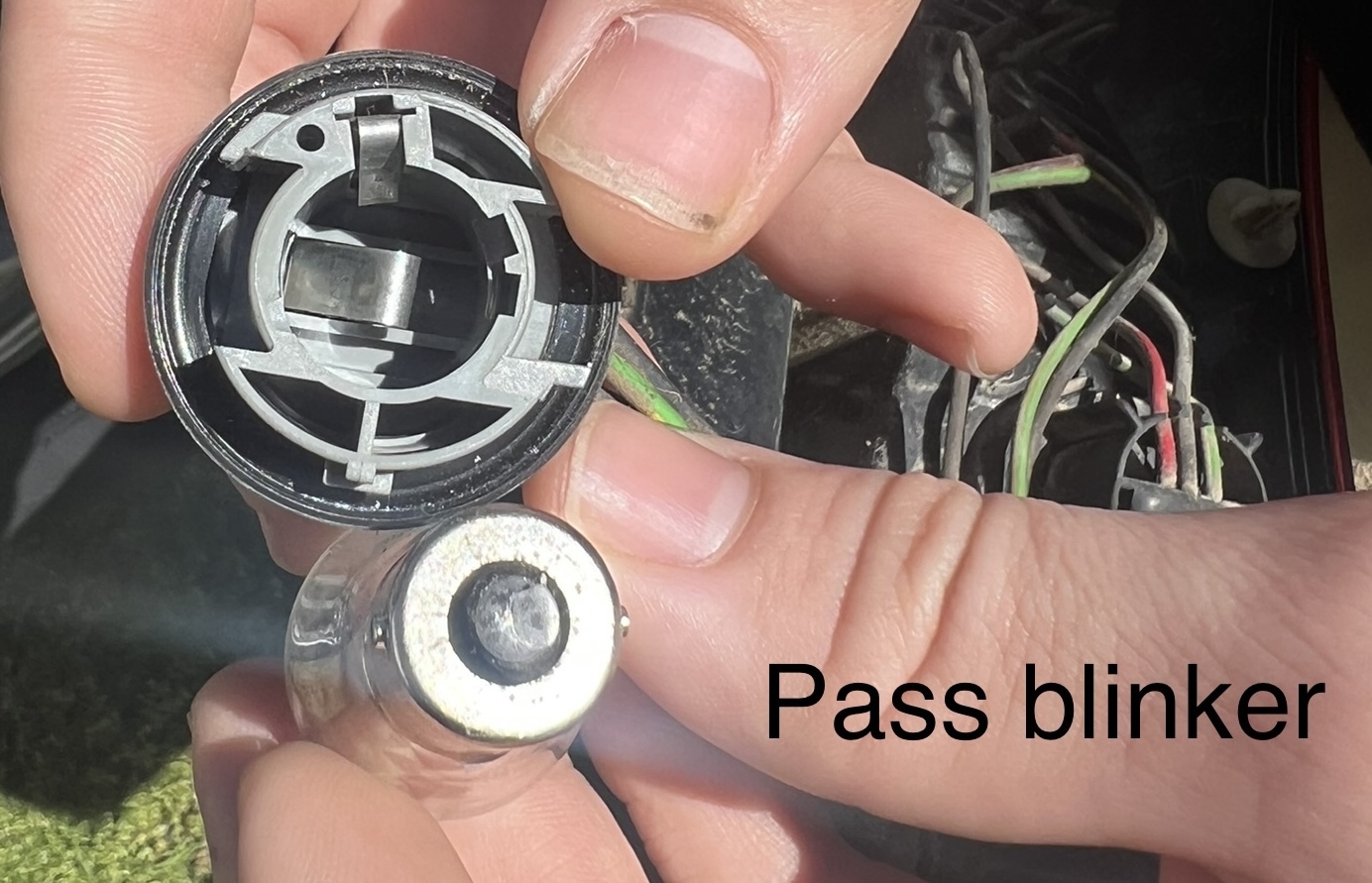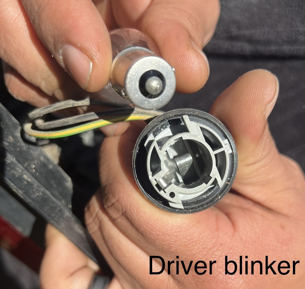 Rear blinkers and brake lights twist into the socket. The rear taillights push in.