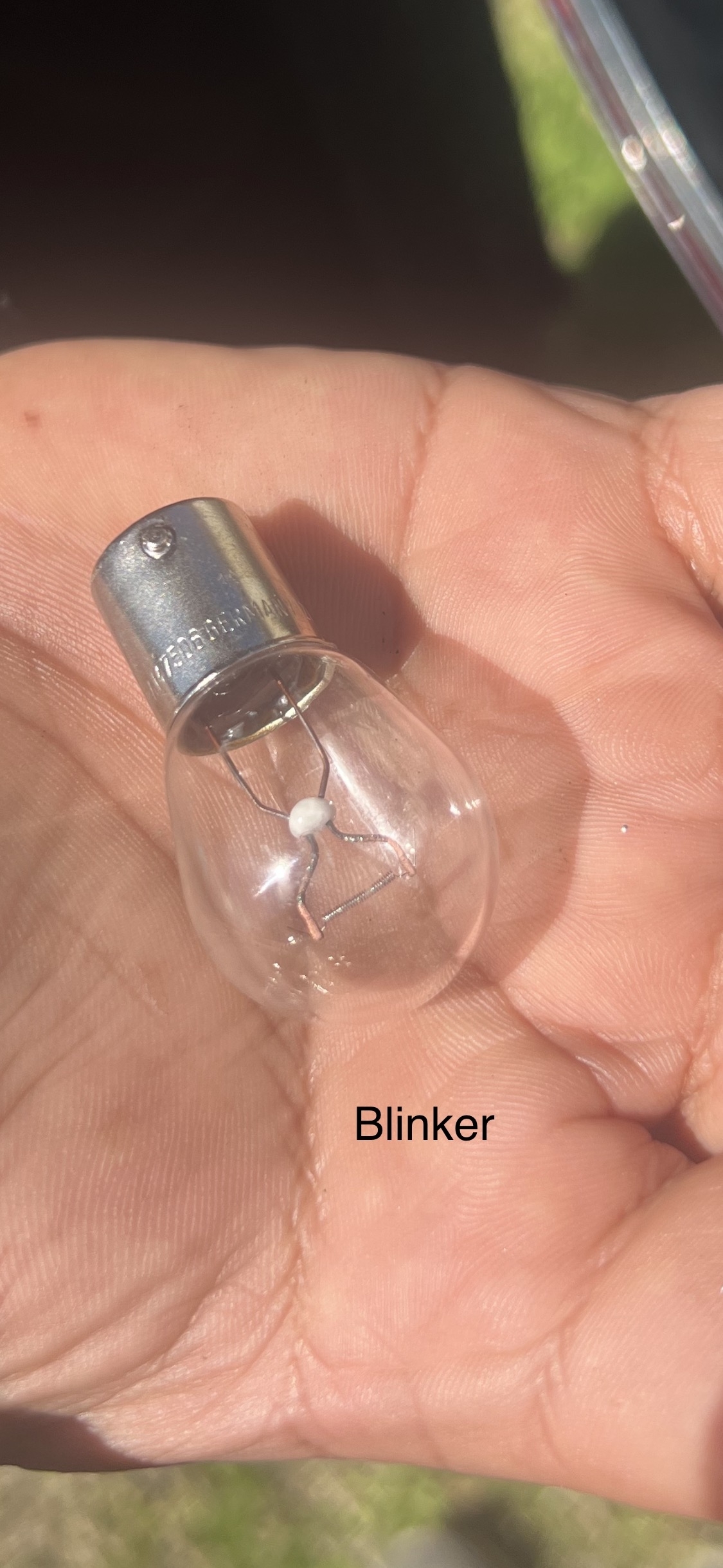 I do not recall the part number but i do know the rear blinkers and brake lights take the same bulb which is the standard traditional round bottom kind with a prong on each side. The rear taillights have a blade type connection.