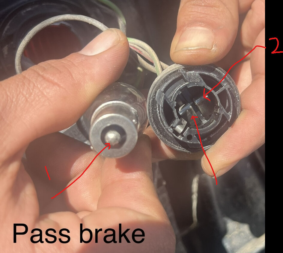 Can you confirm the brake light bulbs are the correct ones? They should have two connections at the bottom of the bulb, not one.