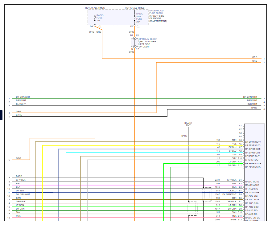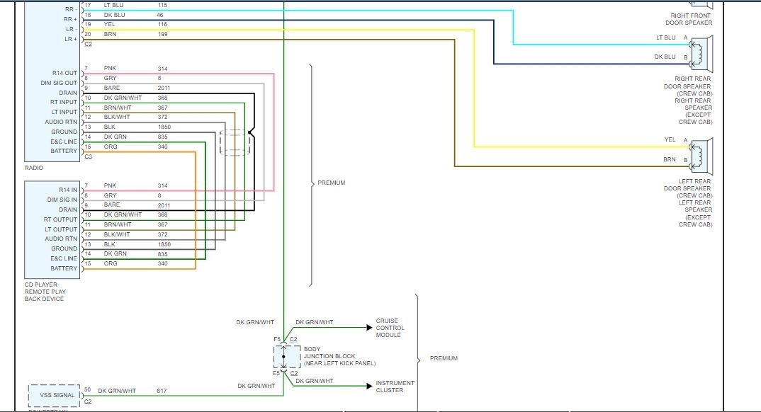 The truck is all factory... The radio is the factory head unit along with the factory speakers and wiring etc. The radio always powers on so it shows the clock which is right but it always goes back to station 98.1 and it loses any of the presets i just set every single time i shut off the truck and start it again regardless if there will be any sound. Sometimes the radio would work and sometimes it wouldn't, it was anyone's guess, but every time when the radio would produce sound it only comes out of the one passenger door speaker. I can understand if the driver side door speaker is blown or messed up from the rain but there are little speakers (in the cab panel on both sides where the back windows would be if it were a four-door) that i don't see how they could be messed up so i'm not sure why i'm only getting sound out of the one speaker. I finally pulled the driver side door panel off and found that someone had cut the wires to the door lock actuator (which is broken but apparently doesn't affect my ability to open the door with the key since i do it and have no problem). I got those wires back together (and moved the little piece side to side while testing for the radio) and it made no difference with the radio-still the same thing sometimes it would work sometimes it wouldn't, nothing i did made a difference. Using a multi-meter i tested for power in those wires and the driver side door speaker wires... All seems good. So i took the door speaker out and tested it for impedance-it should be 4 ohms and it would jump around but finally settle around 3.3 ohms. I was in a rush so i didn't connect the speaker back for half the day and for that entire half a day i had radio every single time i started the truck. To test this theory-truck off, i plugged the speaker back into the door and turned the key to the on position.... Nothing. Turned the truck on, so engine running... Still nothing. Shut off the truck completely, unplug speaker and turn key to on position and boom i have sound! Of course it was still only out of the one speaker in the passenger door but it proved my theory that when the driver side door speaker is plugged in the radio only works when it wants to and still only out of the one speaker in the passenger door. So i took what i know to be a good speaker and hooked it up to the driver's door, ran the same tests and got the same results so i don't understand why this is happening whether or not the speaker is good. Help? I'm so lost and tired of singing to myself.