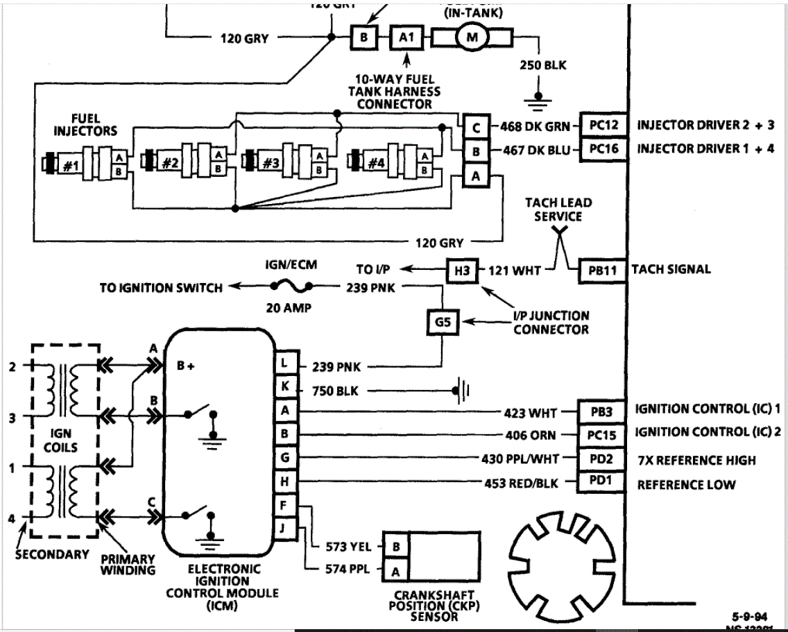 See pics below. The pictures are from General Motors (Pontiac Division). I'm hoping the wire colors you are seeing match.
