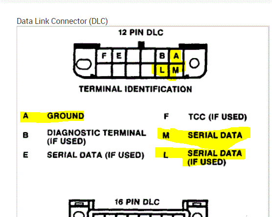 1- My car doesn't seem to have any alarm option, so the 3-wire male connector is not important as it looks an "extra accessory" here. The colors are (Orange=Blue- Grey if not tan as you described it, it is a pale color tone ). 2- The black with a white tracer wire pin in my DLC had a positive continuity test with ground. 3- Is ALDL the alternate term for DLC? 4- The link you provided: I once read this content but not that detailed as it is here. It would have been a great great thing to use but since my DLC doesn't have any pin/wire in the (B) terminal, how can I jumper it to the adjacent(A) terminal?