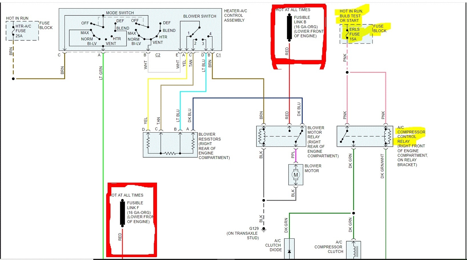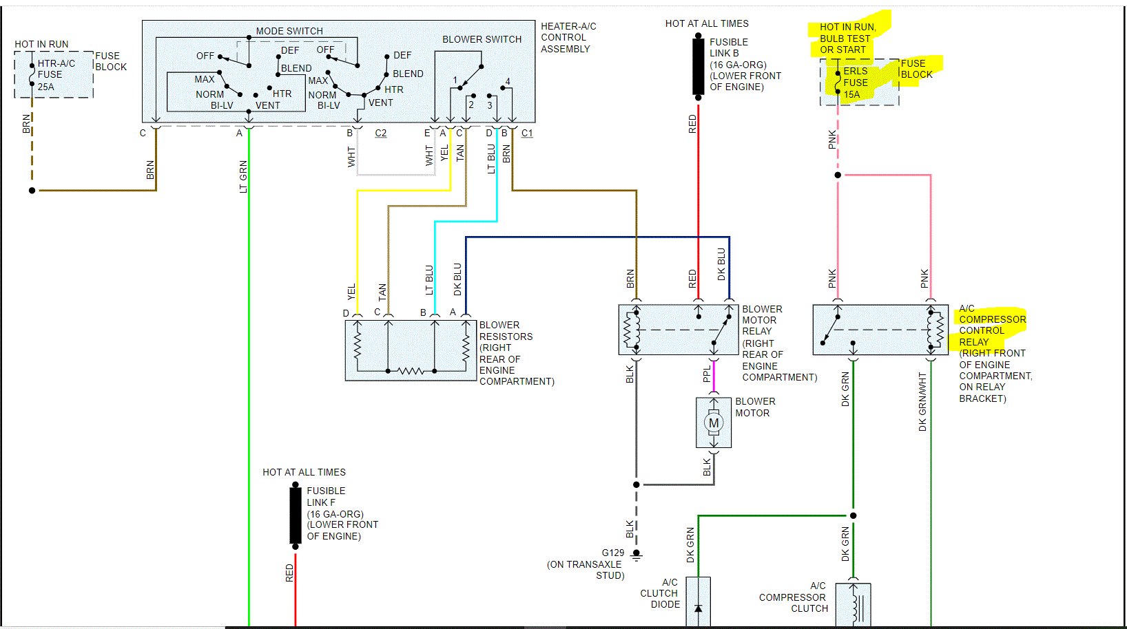 As far as the ERLS fuse, if the fuse keeps blowing, it is likely a short to ground between the fuse and relay. It's located in the fuse box and is what powers the AC relay. It only gets power when the key is in the run position. See pics 2 and 3. Also, it is a 15 amp fuse in the pic I attached below (pic 1). It's located in the bottom row. I didn't highlight it, but it's identified as ERLS.