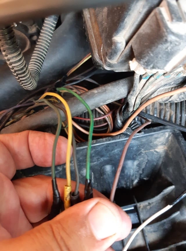 This is a great dispatch! I will take some time to go through the 3 attachments comparing the wires to my own, and yes it is (tan) color, I used the (brown) instead, I apologize for that, I am attaching a daytime photo for the 3 wires, the colors are pale since these are the original wires for a 26 years old automobile so I cared to make the connector visible too. I am so grateful for the great assistance you are providing, such a wonderful site that I needed to get acquainted with so long ago.