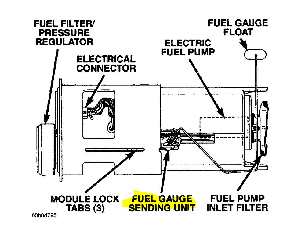 Now, if you find there is no resistance or no resistance, you will need to replace it. It is located on the fuel pump module in the tank. Pic 1 shows the location of the sensor (rheostat).