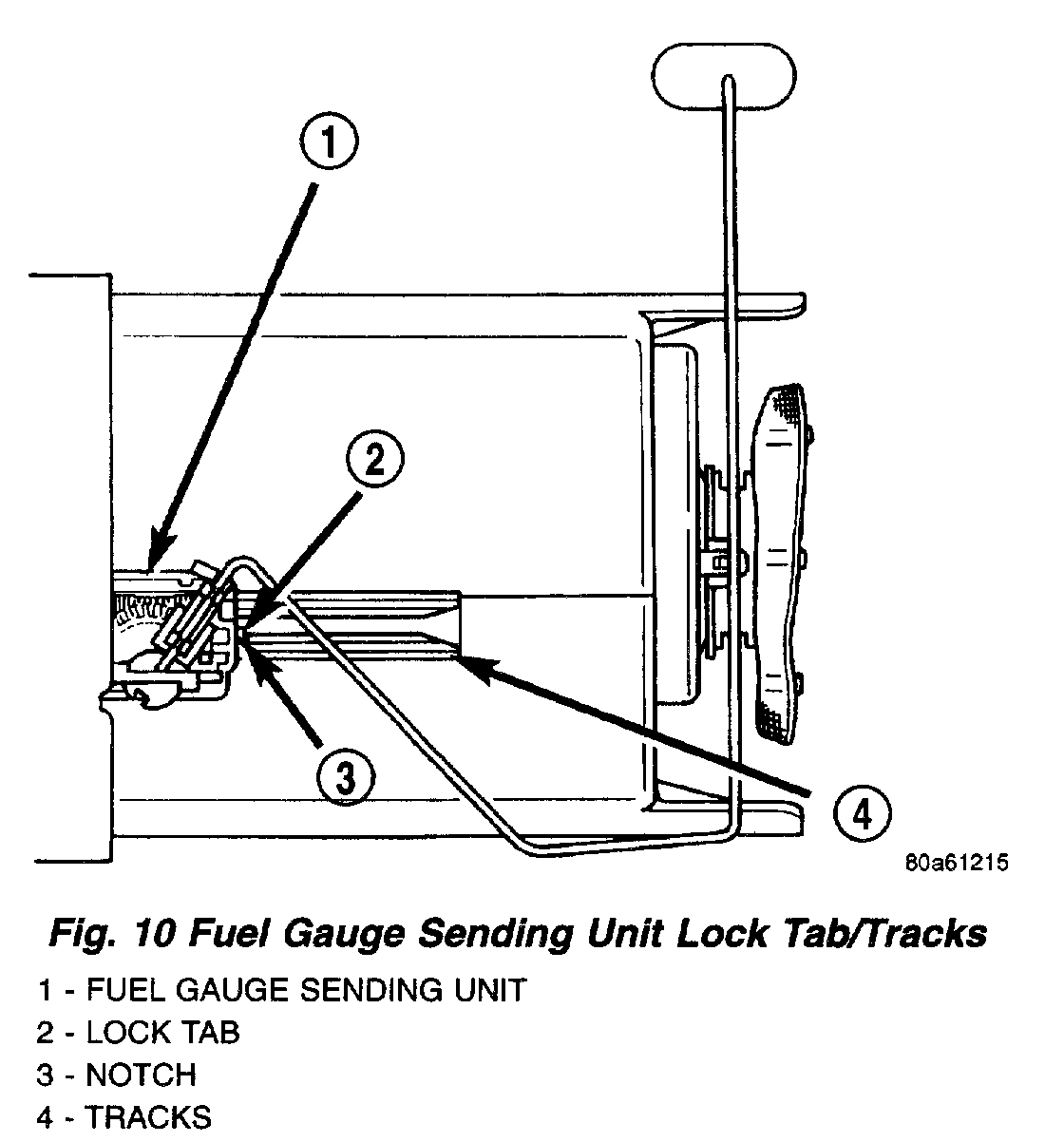 Fig. 10 Fuel Gauge Sending Unit Lock Tab/Tracks
