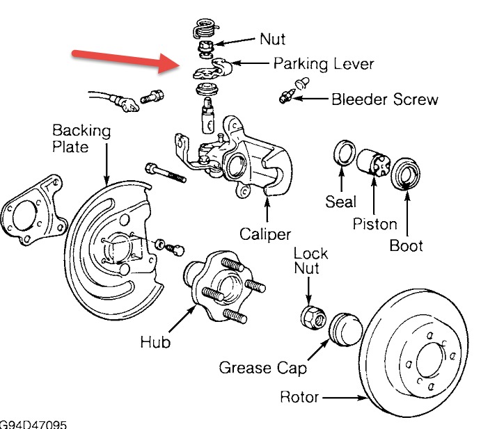 The hyundai service manual says to disconnect the parking brake cable mounting clip but it doesn't identify the part. There is a small U shaped sheet metal clip about 1 inch long that holds the exterior of the cable near the caliper, and also a larger thick steel cable support bracket about 3 inches long that is bolted to the caliper assembly. Which one is it?