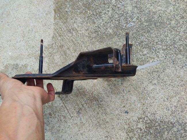 Here is the bracket. One of the posts snapped off. Also, the little ring of rust on the hanger caused a small gap between it and the bushing. Those two small things lead to that very intense vibration and noise.. only two bolts hold it into frame. Unfortunately, the Mercedes top mounted it and I had to remove the bumper and headlight to get to bolts. Was not the easiest thing to do by yourself.